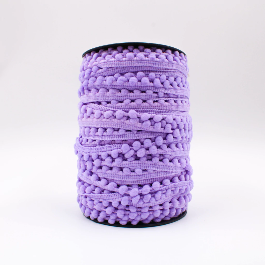 A Fita Pompom 12mm importada possui 5 MT. O Cliente pode solicitar a cor desejada. O item lilas possui um leve degrade e possui um tom de cor bem clarinho, puxado para um tom bem clarinho.