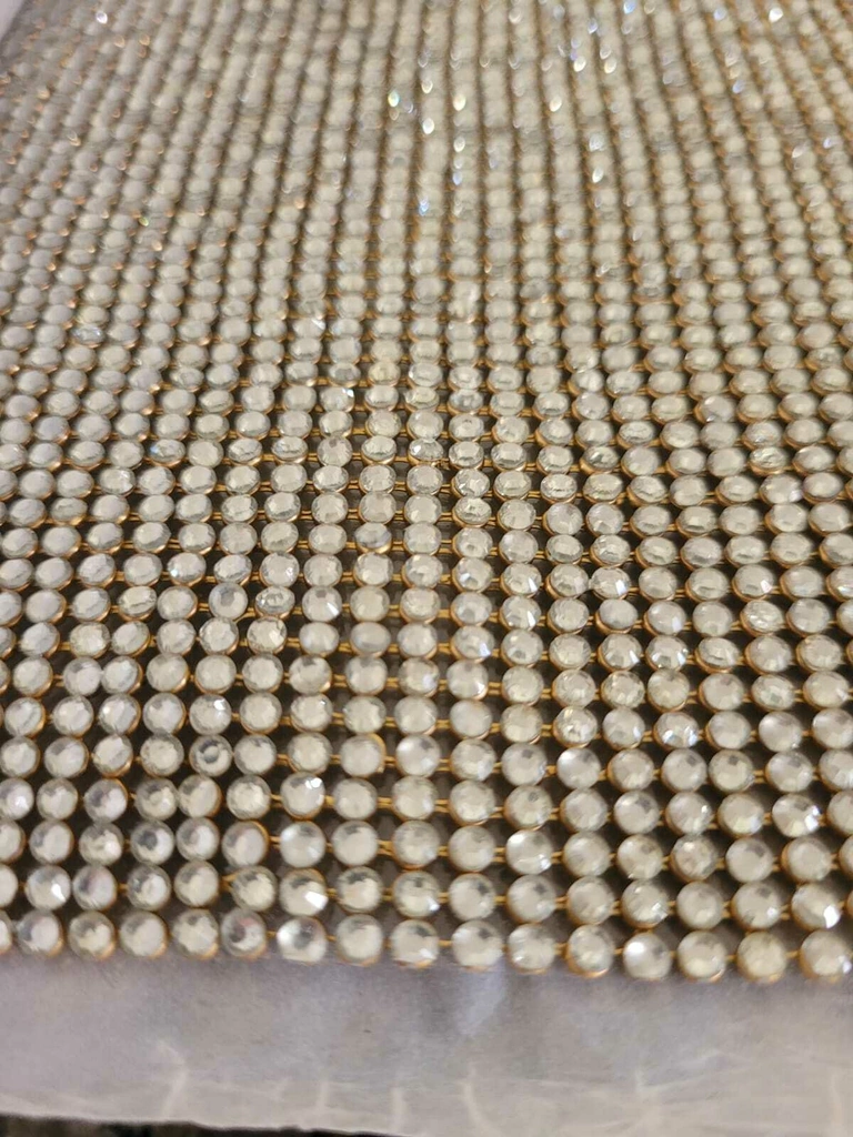 Manta de Strass Simples - Prata com base Dourada 7x45cm